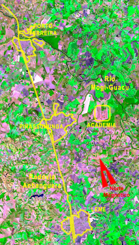 Outra referência importante é o Rio Mogi-Guaçu, bem visível, situado aproximadamente a 2NM a Leste da Academia.